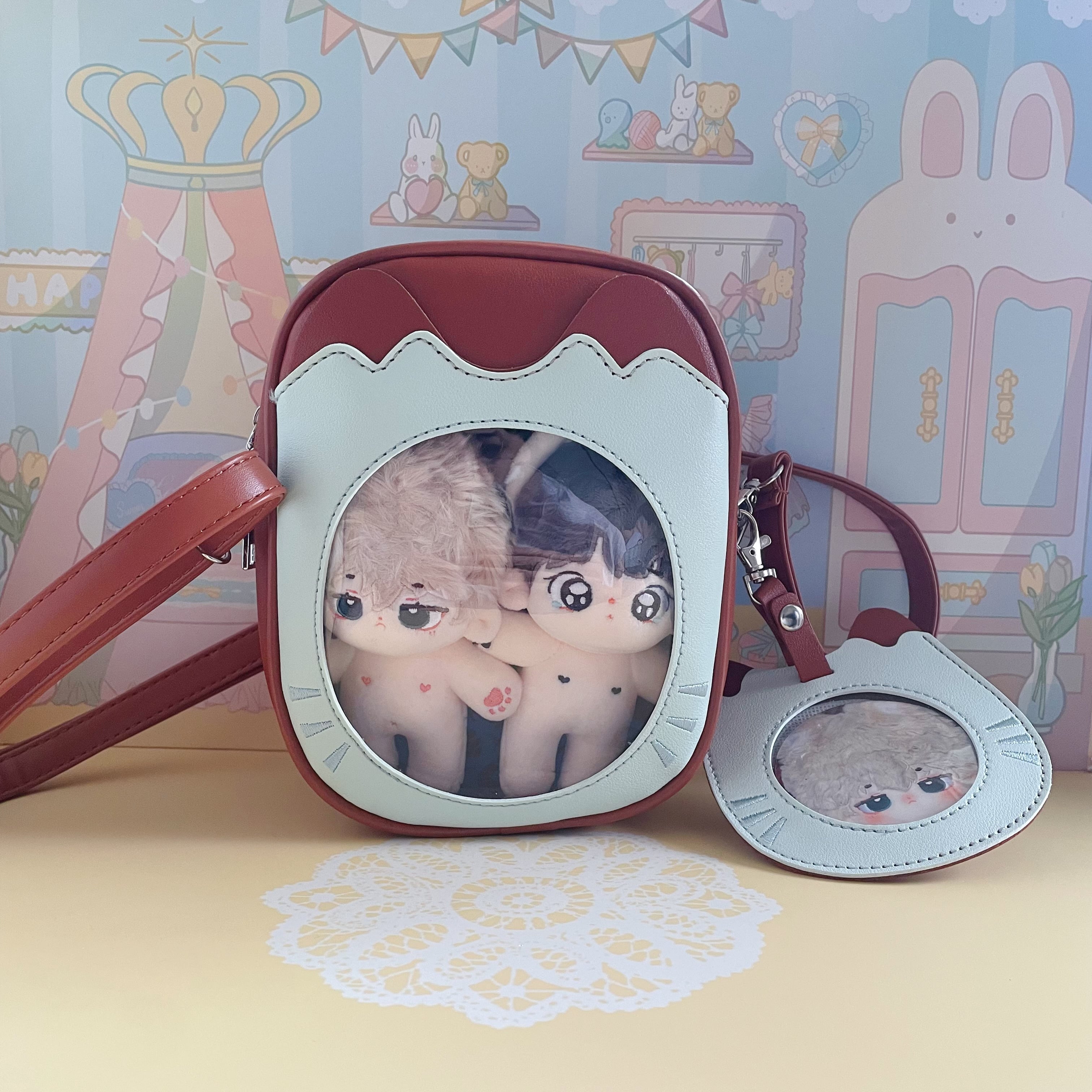 10cm15cmぬいぐるみ用 スカルパンダ用 ラブブ用 ぬいぐるみ用ミニショルダーバッグ バッジケース付き 2色