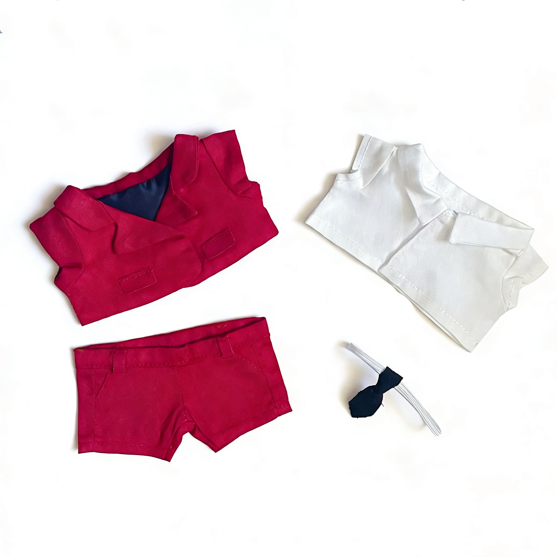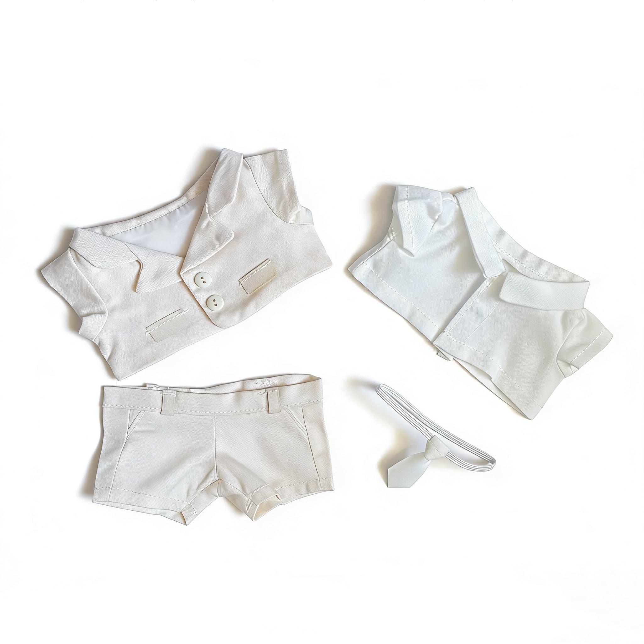 シンプルで上品なシルエットに仕上げた、15cmぬいぐるみ用フォーマルスーツ4セットです。