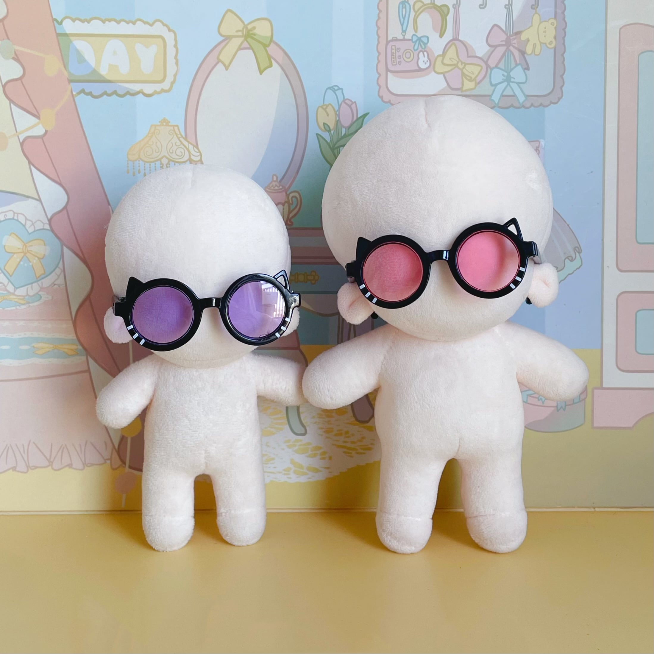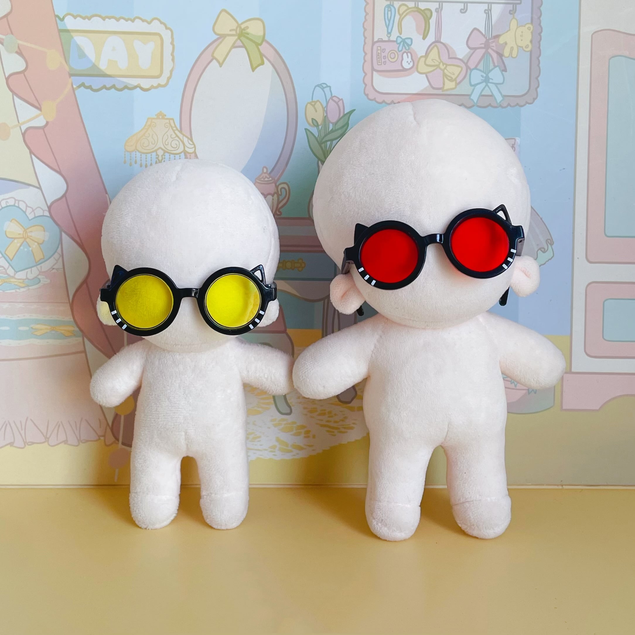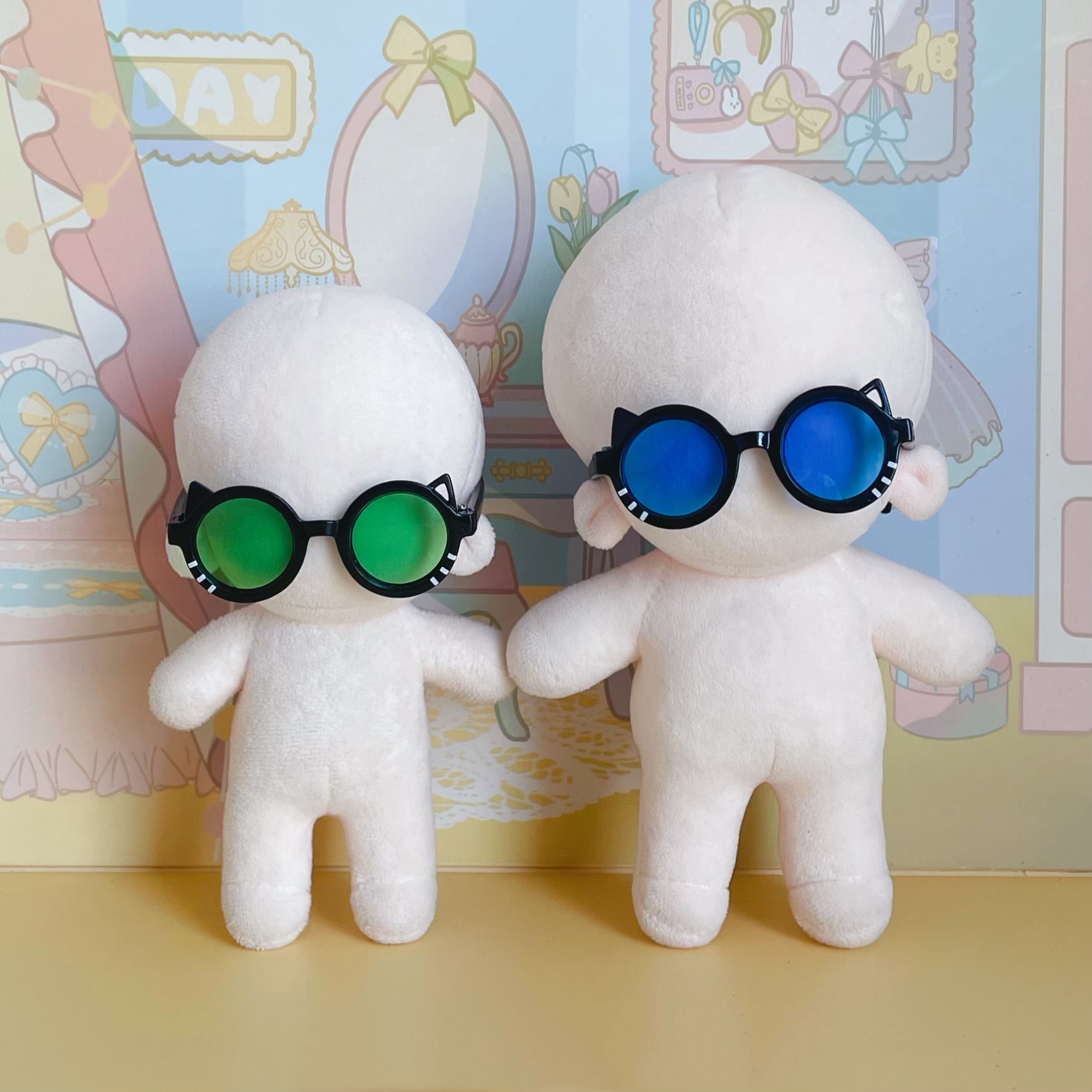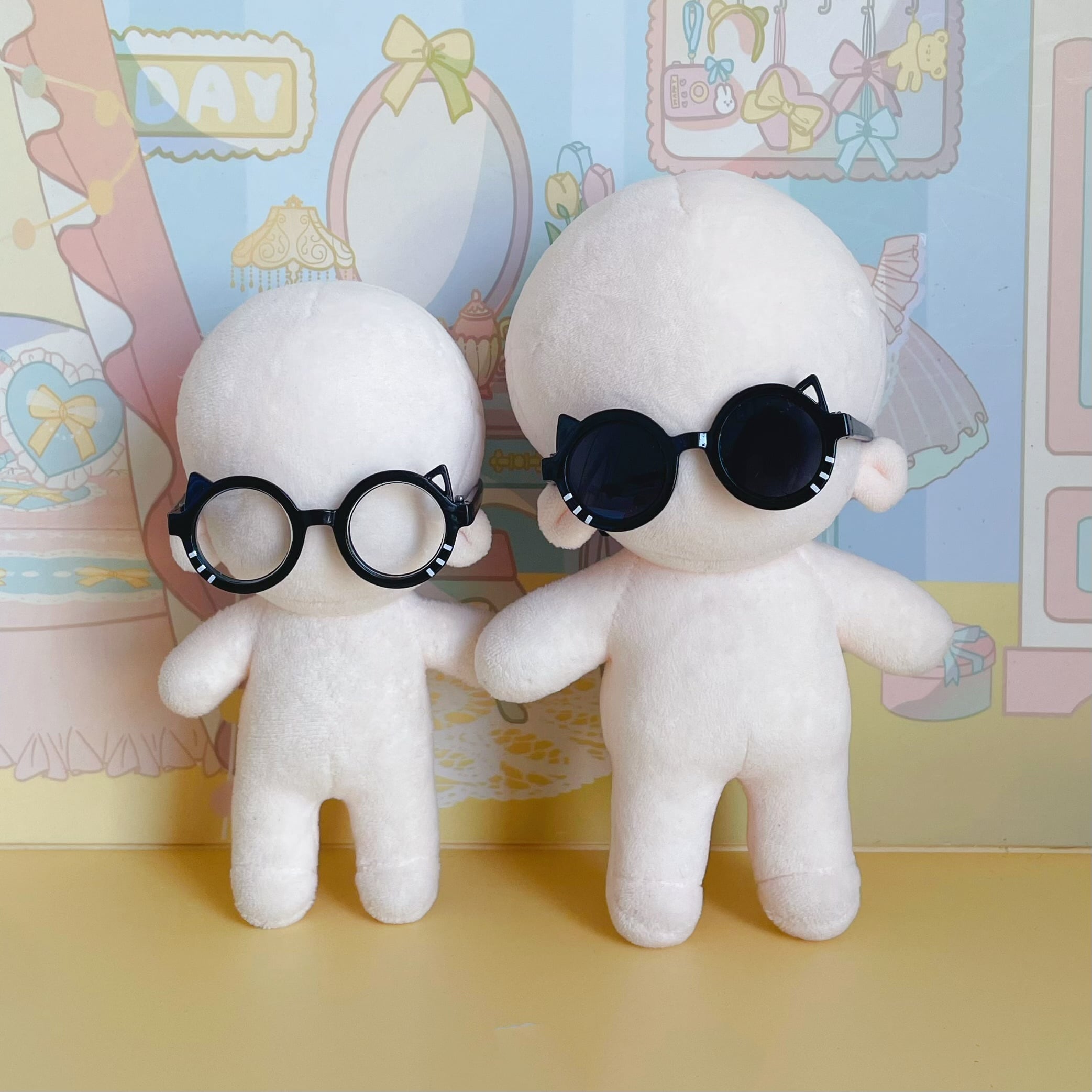 10cm15cmぬいぐるみ用 ラブブ用 ぬい服 着せ替え服 ちびぬい服 推し活 ぬい活 猫耳付きメガネ 8色 幅6.5cm