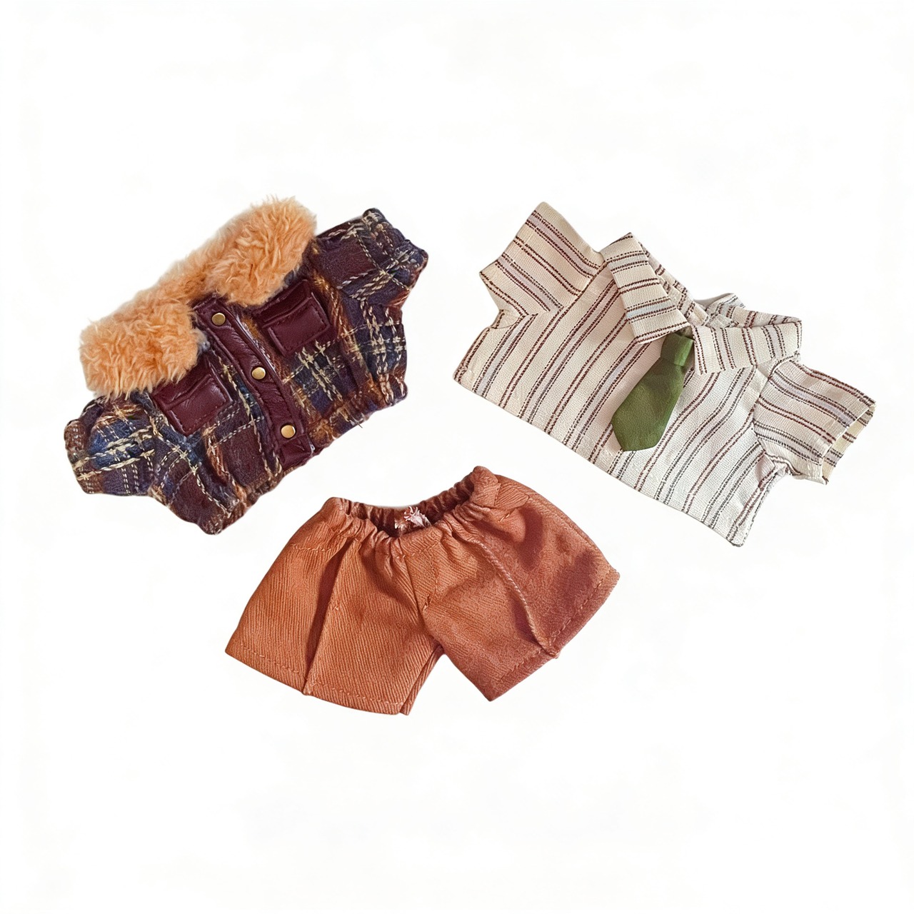 15cmぬいぐるみ用 17cmlabubu用 ちびぬい コスチューム ぬい服 着せ替え服 ぬい服 洋服 レトロカジュアル 3点セット