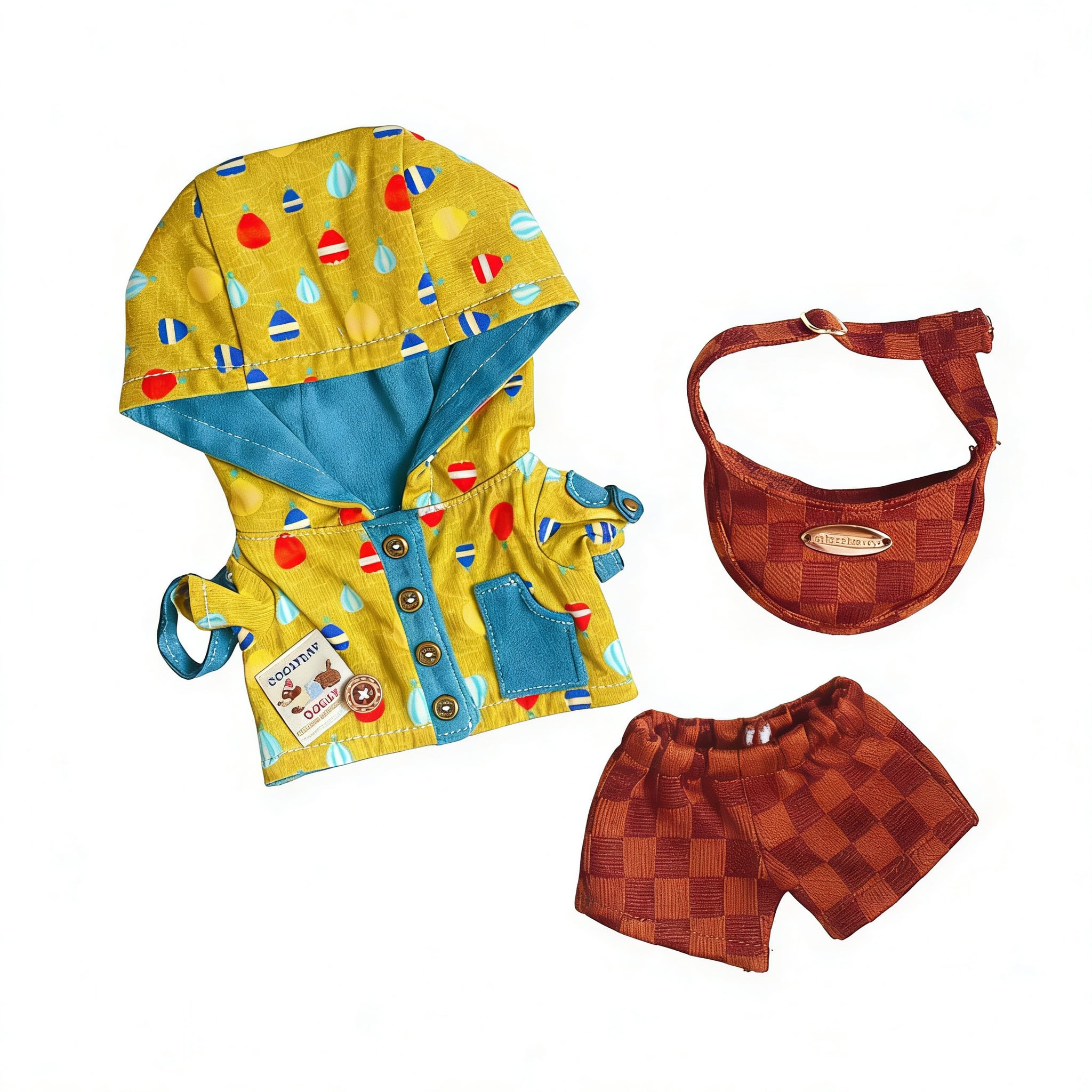 カラフルな柄が目を引く、可愛さ満点の15cmぬいぐるみ用カラフルポップぬい服3点セットです。